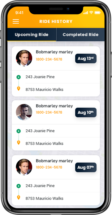 Booking History: Upcoming Ride Booking