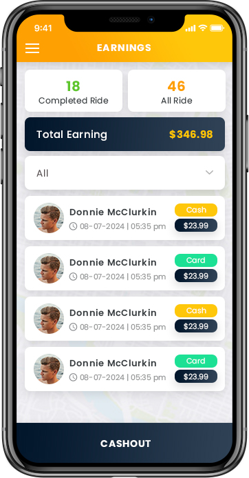 Mobile Screens For - 973 Taxi App
